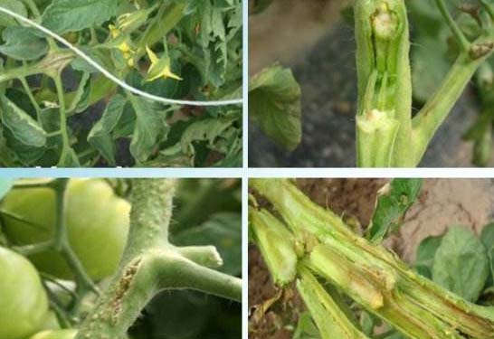 潰瘍病可危害葉片、莖和果實。病葉似缺水狀卷縮,有的植株-側(cè)葉片凋萎。病莖的髓部變褐腐爛,或在莖部開裂生長不定根潮濕時有白色膿狀物流出。病果胡稍突起園斑,其邊緣為白色,中央部分為褐色(似鳥的眼睛,故又稱鳥眼病),后期果肉腐爛,并使種子帶菌,有的幼果皺縮停長。
