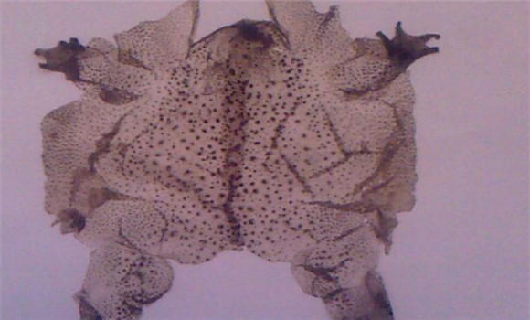 6.如要將蟾衣加工成標(biāo)本出售,可輕輕地把蟾衣在水中漂散,-手用鑷手夾住,另-手用一塊玻璃入水中,慢慢移托上去,再慢慢按該只蟾蜍形體拼合-整體形狀,后涼干即可,也可移到白紙上拼合成標(biāo)本。亦可移到塑料膜上,半干時(shí)揭下曬干,也可用電熨燙干、燙平,質(zhì)量更好,價(jià)值也高。