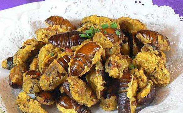 【做法】①將蟬蛹清洗干凈,淋干水分。②鍋內(nèi)油燒熱,放入蟬蛹炸至金黃。③將蟬蛹控油盛出,撒上適量的鹽即可。